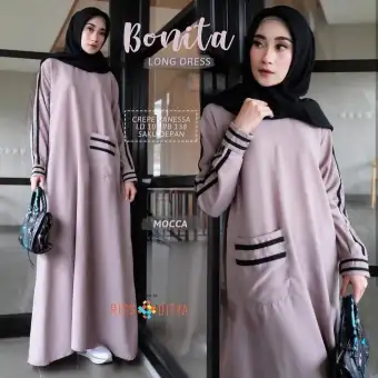 Obm Baju Gamis Bonita Long Dress Wollycrepe Maxy Wanita Muslim